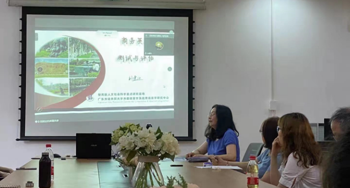 6月30日14:30分,广东外语外贸大学副校长、博士生导师刘建达教授应邀在宏文楼商英实验室1-2,为我校师生作题为“商务英语测试与评估”的学术讲座。讲座以线上方式进行,由商务英语学院院长段玲琍教授主持,来自全校的近百名师生参加了本次讲座。