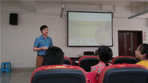 2015年5月6日下午3点,科研沙龙在博文楼四楼报告厅如期举行。本次讲座以“《我们赖以生存的隐喻》读书报告会”为主题,由一年级研究生马慧敏、张莹、闫旭芳、杜鹃主讲。本次活动由张凌博士主持,赵永峰教授、原卫国博士等以及众多研究生共同参与本次讲座,现场气氛活跃,学术氛围浓厚。