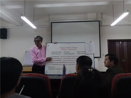 接下来,王教授以“中国菜谱命名”、“一词两意”等论文为例生动充分地展示了论文写作的基本思路和过程,反复强调论文的论点要新颖,论据要精当,整个文章要联系紧密一气呵成,并指出:“好的文章是改出来的”,论文完成之后一定要反复修改并完善。