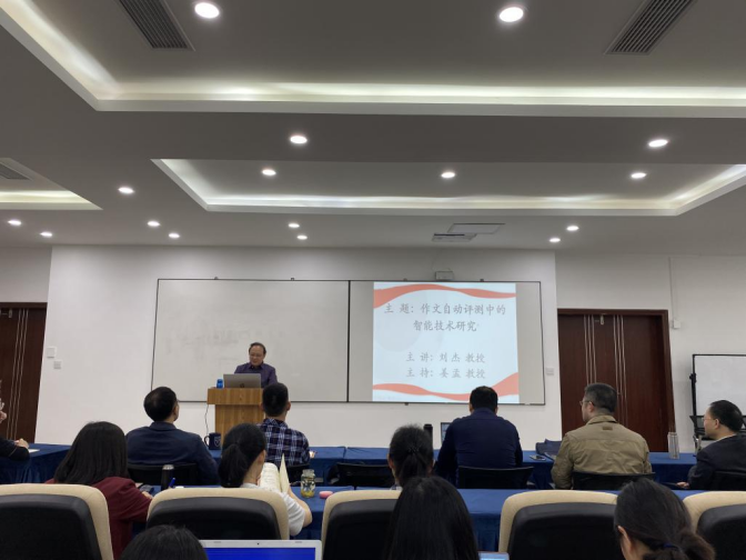 2021年5月27日上午,“语言智能大讲堂-交叉学科讲坛”在四川外国语大学语言脑科学中心401报告厅举行。此次活动特邀中国人工智能学会(CAAI)语言智能专业委员会秘书长、首都师范大学博士生导师刘杰教授做学术报告,报告主题为“作文自动评测中的智能技术研究”,报告会由语言智能学院院长姜孟教授主持。